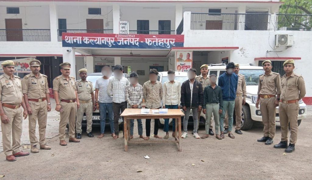 फतेहपुर । कल्याणपुर पुलिस ने गुनीर तिराहे पर वाहन चेकिंग के दौरान मुठभेड़ में तीन लग्जरी कारों से सवार आठ अंतरजनपदीय बदमाशों को गिरफ्तार किया है। पुलिस की जवाबी फायरिंग में एक बदमाश घायल हो गया। आरोपियों के कब्जे से तीन लग्जरी कारें, 10 मोबाइल फोन, 58,100 रुपये नकद, एक देशी तमंचा, दो जिंदा कारतूस तथा आधा दर्जन बकरियां बरामद की गईं।