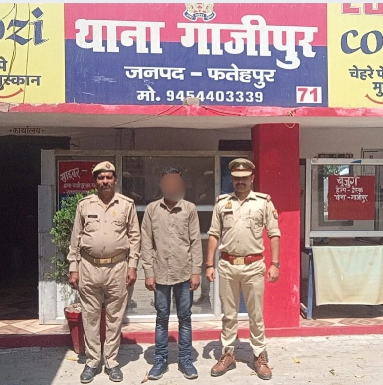 फतेहपुर । बीती देर शाम गाजीपुर थानाध्यक्ष हनुमान प्रताप सिंह ने अपने हमराहियों के साथ गस्त के दौरान मुख़बिर की दी गई सटीक सूचना पर एक फरार वांछित अभियुक्त सुनील कुमार यादव पुत्र छत्रपाल यादव निवासी ग्राम पैगम्बरपुर बखरी थाना गाजीपुर को गिरफ्तार किया है, अभियुक्त स्थानीय थाने से एक युवती को अपने प्रेमजाल में फंसा शादी का झांसा देकर उससे लगातार कई माह तक दुष्कर्म करने व गर्भ ठहरने पर जबरन गर्भपात करवा शादी से इंकार कर जान माल की धमकी देने के गम्भीर आरोप में दर्ज मुकद्दमे में वांछित था। गिरफ्तार किये गये अभियुक्त को पुलिस ने सुसंगत धाराओं में न्यायालय पेशी के बाद न्यायिक अभिरक्षा में जेल भेज दिया।