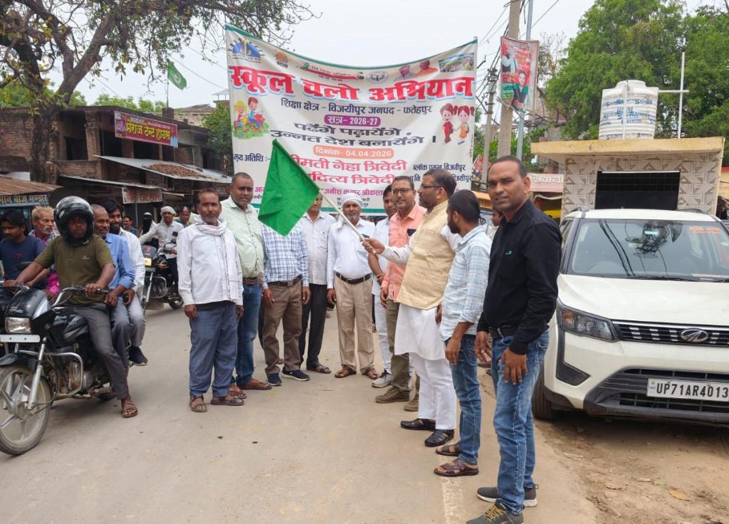 विजयीपुर, फतेहपुर । विजयीपुर ब्लॉक के खखरेरू नगर में शनिवार को “स्कूल चलो अभियान” के तहत ब्लॉक स्तरीय जागरूकता रैली निकाली गई। रैली का शुभारंभ पर्यावरण पहरूवा एवं बुंदेलखंड राष्ट्र समिति के अध्यक्ष प्रवीण पांडेय ने हरी झंडी दिखाकर किया। रैली में शामिल शिक्षक और स्कूली बच्चों ने नगर भ्रमण करते हुए “हम बच्चों का नारा है, शिक्षा अधिकार हमारा है” जैसे नारों से लोगों को शिक्षा के प्रति जागरूक किया।