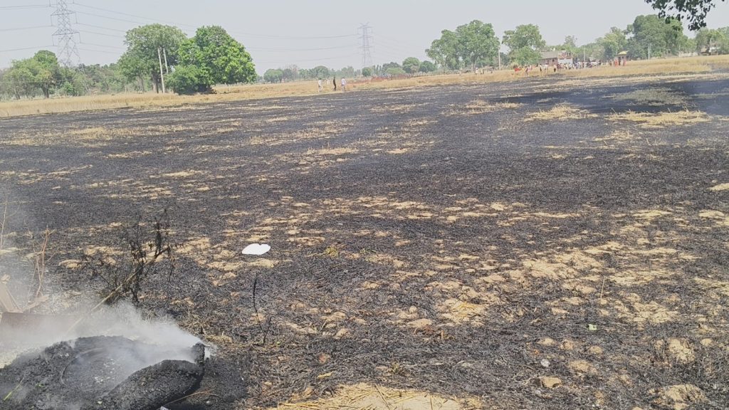 विजयीपुर, फतेहपुर । विजयीपुर क्षेत्र के सिलमी गांव स्थित सरपतहा इलाके में मंगलवार दोपहर पराली जलाने के दौरान निकली चिंगारी से गेहूं की खड़ी फसल में आग लग गई, जिससे करीब पांच बीघा गेहूं जलकर राख हो गया।